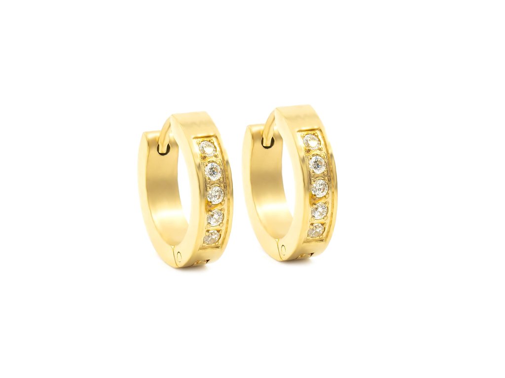 Šetrite slová, nechajte za seba prehovoriť Náušnice krúžky s kamienkami 1,6 cm GOLD S4238 blyštiace sa medzi ostatnými šperkami v kategórii Náušnice rovnakej kvality. Odolnosť, dizajn a starostlivosť o vás. Len tak sa vám na tvári objaví úprimný úsmev. Preto sa nespoliehame len na šperky, ale vždy pridávame niečo navyše. Taký malý darček. Každý kus zabalíme do darčekovej krabičky a pri nákupe nad 40 € za vás zaplatíme poštovné. Ak sa vám šperk náhodou nepodarí správne vybrať, nezúfajte. Tovar môžete vymeniť do 30 dní. Urobte si krajší deň s BRUNOshop.sk.