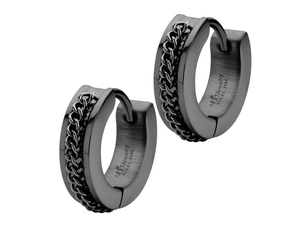 Náušnice KRÚŽKY s retiazkou ČIERNE S4297