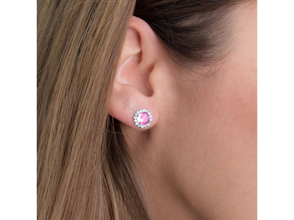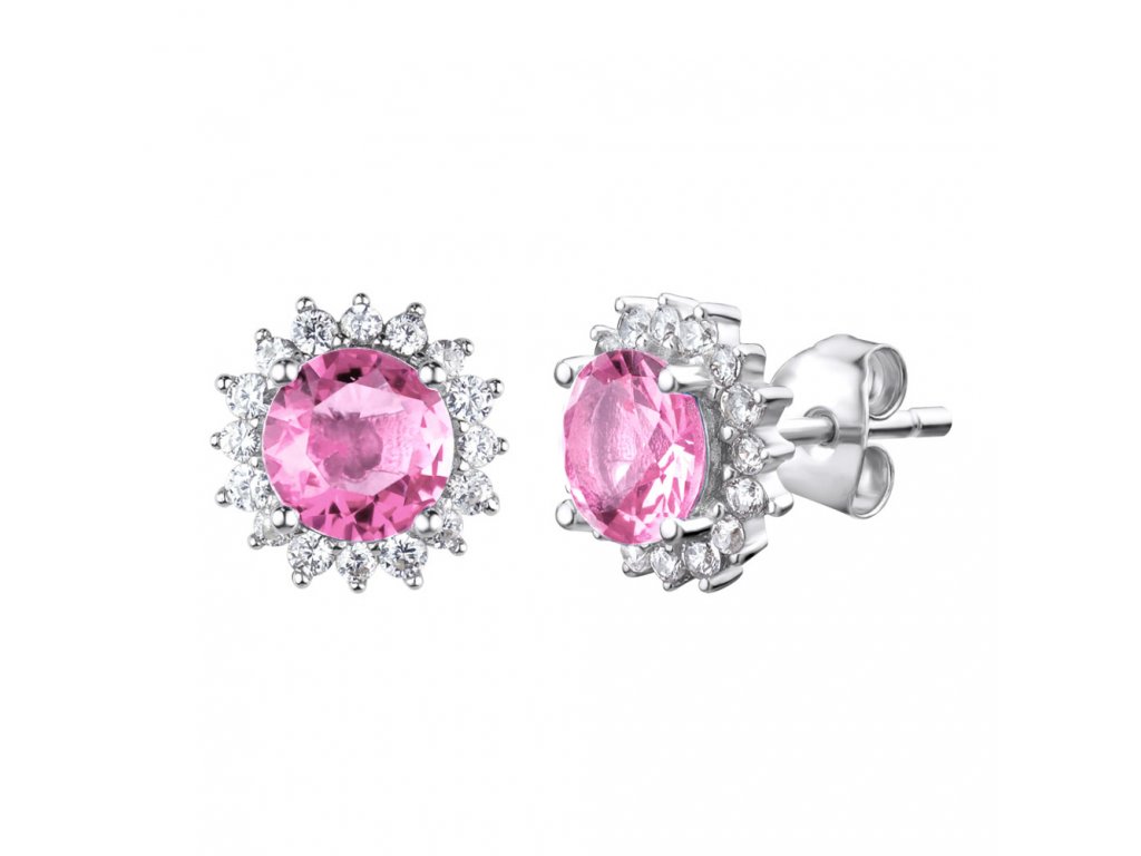 Strieborné náušnice KVET so zirkónmi RUŽOVÉ Y0232