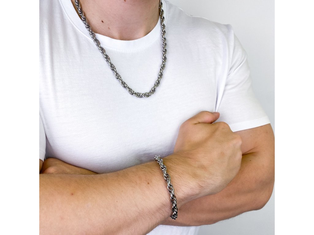 Dĺžka náramku 22 cm, šírka 0,9 cm. Dĺžka retiazky 55 cm, šírka 0,9 cm....